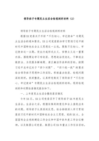 / 【七哥公文】2024年:领导班子专题民主生活会检视剖析材料(2)+更多免费公文+VX:QiGeGongWen2024