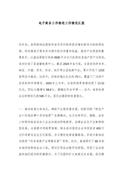 / 【七哥公文】2024年:电子商务工作推进工作情况汇报+更多免费公文+VX:QiGeGongWen2024