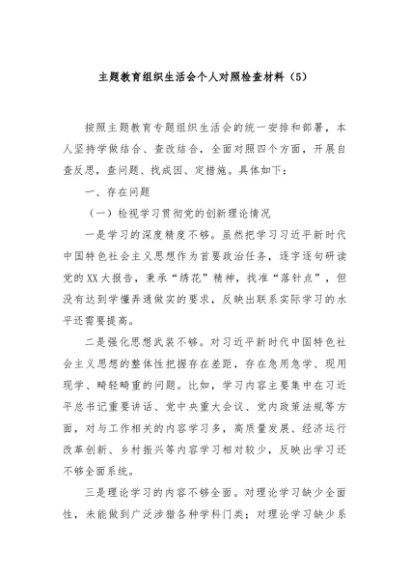 / 【七哥公文】2024年:主题教育组织生活会个人对照检查材料(5)+更多免费公文+VX:QiGeGongWen2024