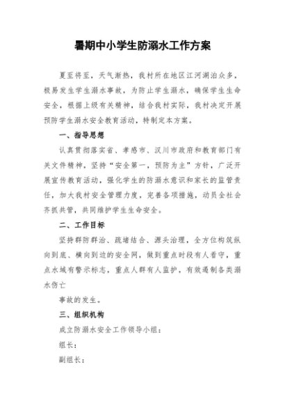 / 【七哥公文】2024年:村暑期中小学生防溺水工作方案+更多免费公文+VX:QiGeGongWen2024