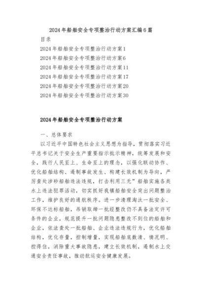 / 【七哥公文】2024年:(6篇)2024年船舶安全专项整治行动方案汇编+更多免费公文+VX:QiGeGongWen2024