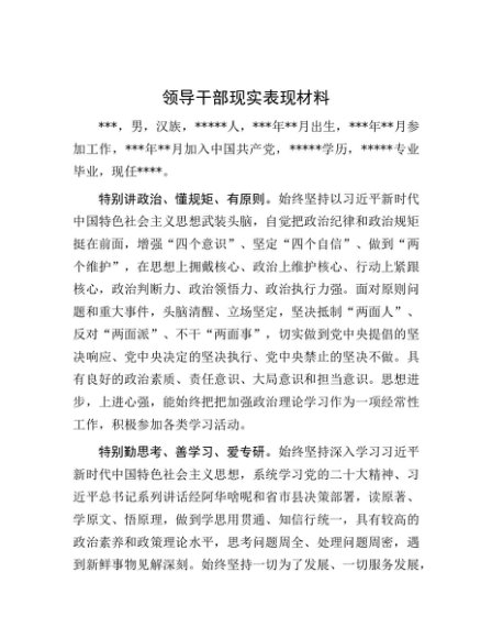 / 【七哥公文】2024年:领导干部现实表现材料1+更多免费公文+VX:QiGeGongWen2024