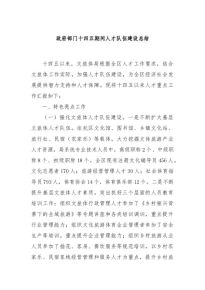/ 【七哥公文】2024年:政府部门十四五期间人才队伍建设总结+更多免费公文+VX:QiGeGongWen2024