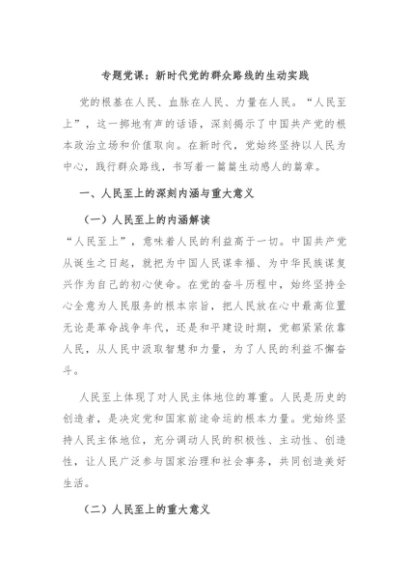 / 【七哥公文】2024年:专题党课:新时代党的群众路线的生动实践+更多免费公文+VX:QiGeGongWen2024