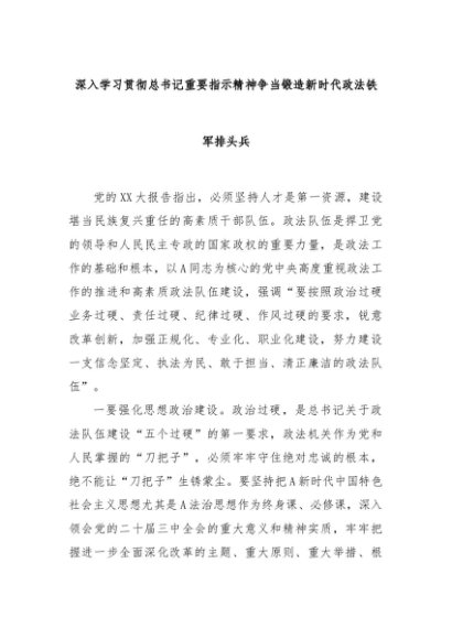 【七哥公文】2024年:深入学习贯彻总书记重要指示精神争当锻造新时代政法铁军排头兵+更多免费公文+VX:QiGeGongWen2024
