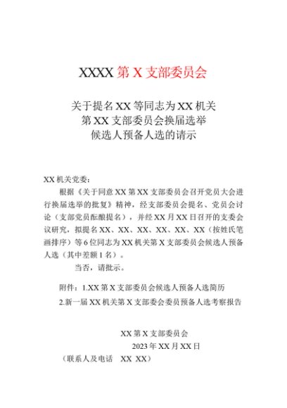 / 【七哥公文】2024年:换届选举候选人预备人选的请示(模板)+更多免费公文+VX:QiGeGongWen2024