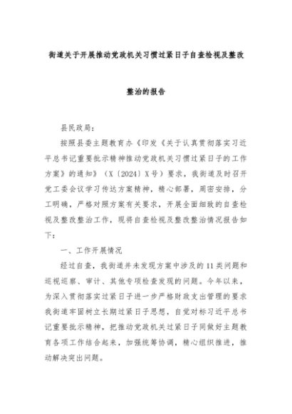 【七哥公文】2024年:街道关于开展推动党政机关习惯过紧日子自查检视及整改整治的报告+更多免费公文+VX:QiGeGongWen2024