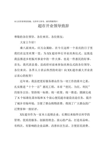 / 【七哥公文】2024年:超市开业领导致辞+更多免费公文+VX:QiGeGongWen2024