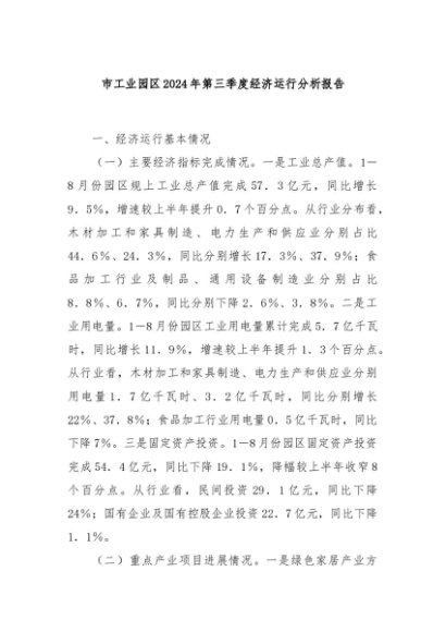/ 【七哥公文】2024年:市工业园区2024年第三季度经济运行分析报告+更多免费公文+VX:QiGeGongWen2024