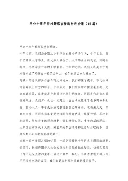 / 【七哥公文】2024年:15篇毕业十周年再相聚感言精选材料合集+更多免费公文+VX:QiGeGongWen2024