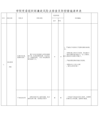 / 【七哥公文】2024年:学院党委组织部廉政风险点排查及防控措施清单表+更多免费公文+VX:QiGeGongWen2024