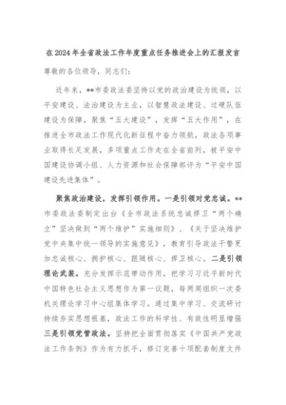 【七哥公文】2024年:在2024年全省政法工作年度重点任务推进会上的汇报发言+更多免费公文+VX:QiGeGongWen2024