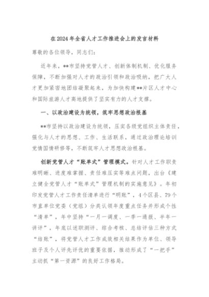 / 【七哥公文】2024年:在2024年全省人才工作推进会上的发言材料+更多免费公文+VX:QiGeGongWen2024
