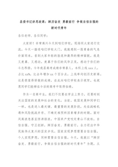 【七哥公文】2024年:县委书记讲思政课:踔厉奋发 勇毅前行 争做自信自强的新时代青年+更多免费公文+VX:QiGeGongWen2024