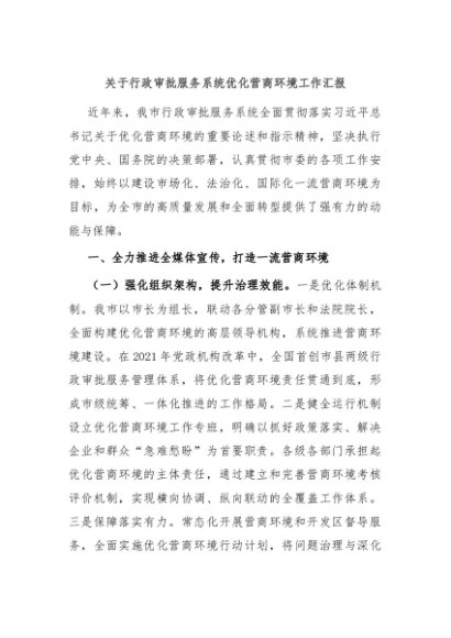 / 【七哥公文】2024年:关于行政审批服务系统优化营商环境工作汇报+更多免费公文+VX:QiGeGongWen2024