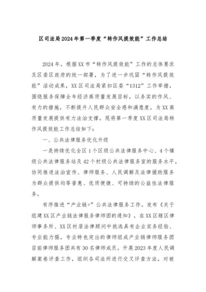 【七哥公文】2024年:区司法局2024年第一季度“转作风提效能”工作总结+更多免费公文+VX:QiGeGongWen2024