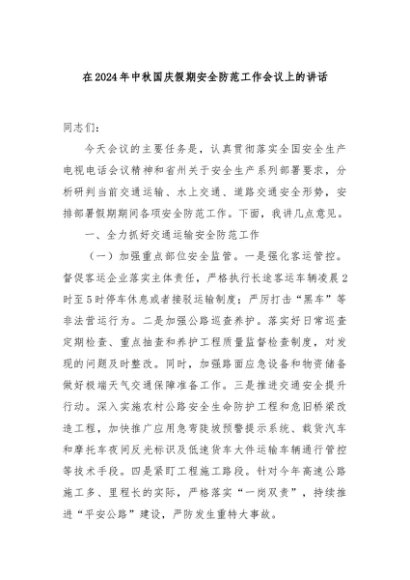 / 【七哥公文】2024年:在2024年中秋国庆假期安全防范工作会议上的讲话+更多免费公文+VX:QiGeGongWen2024
