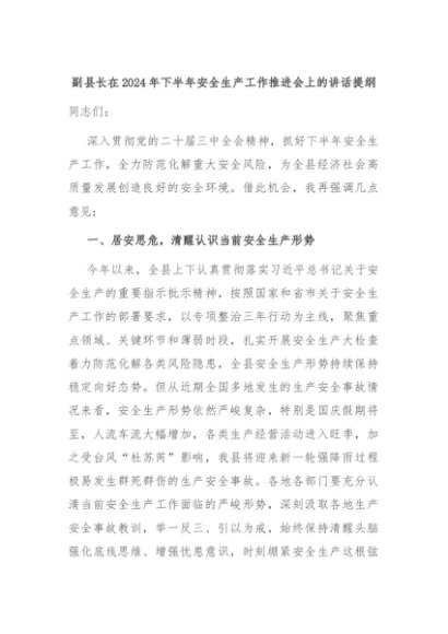 【七哥公文】2024年:副县长在2024年下半年安全生产工作推进会上的讲话提纲+更多免费公文+VX:QiGeGongWen2024