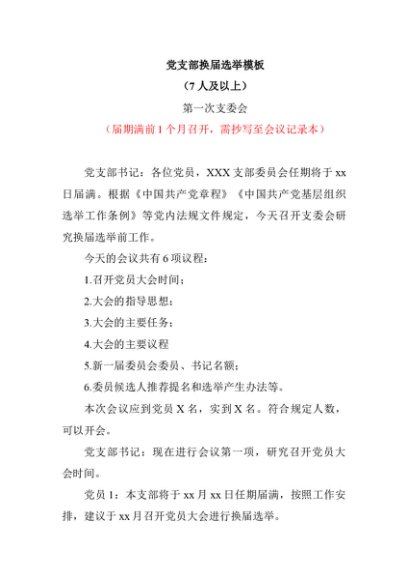 / 【七哥公文】2024年:党支部换届选举模板--(有支委会会议记录)+更多免费公文+VX:QiGeGongWen2024