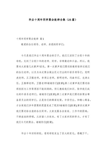 / 【七哥公文】2024年:25篇毕业十周年同学聚会致辞合集+更多免费公文+VX:QiGeGongWen2024