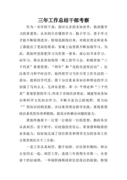 【七哥公文】2024年:三年工作总结干部考察+更多免费公文+VX:QiGeGongWen2024