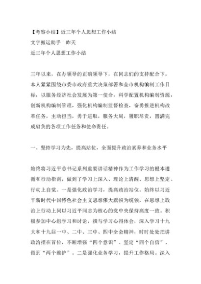 / 【七哥公文】2024年:【考察小结】近三年个人思想工作小结+更多免费公文+VX:QiGeGongWen2024