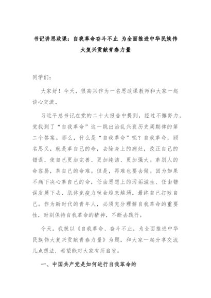 【七哥公文】2024年:书记讲思政课:自我革命奋斗不止 为全面推进中华民族伟大复兴贡献青春力量+更多免费公文+VX:QiGeGongWen2024