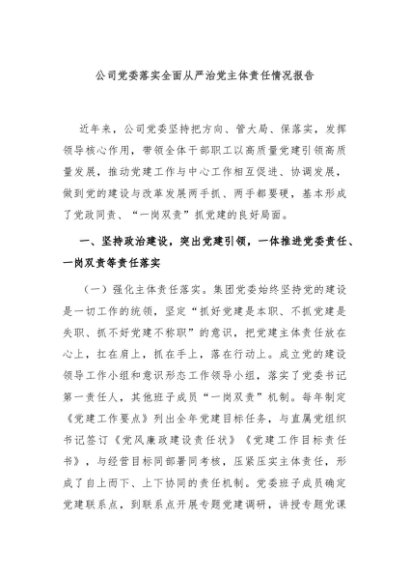 / 【七哥公文】2024年:公司党委落实全面从严治党主体责任情况报告+更多免费公文+VX:QiGeGongWen2024