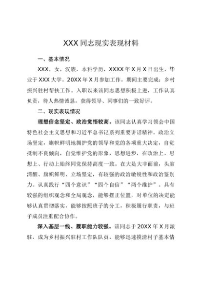 / 【七哥公文】2024年:XXX同志个人入职现实表现材料+更多免费公文+VX:QiGeGongWen2024