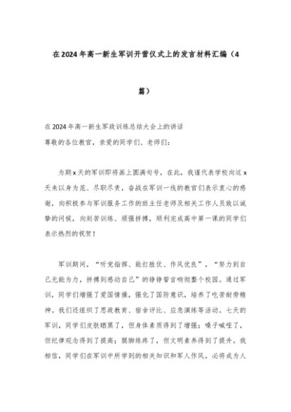 【七哥公文】2024年:4篇在2024年高一新生军训开营仪式上的发言材料汇编+更多免费公文+VX:QiGeGongWen2024