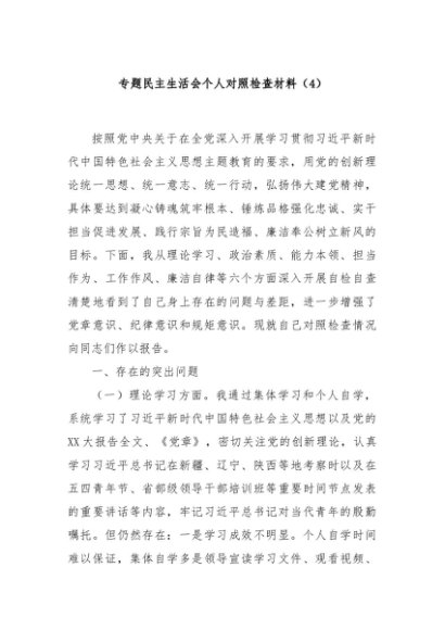 / 【七哥公文】2024年:专题民主生活会个人对照检查材料(4)+更多免费公文+VX:QiGeGongWen2024