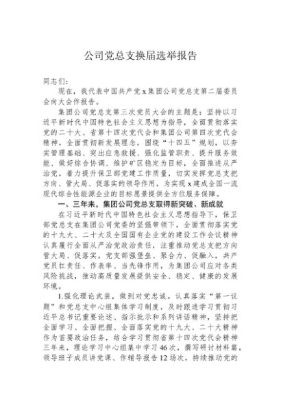 / 【七哥公文】2024年:公司党总支换届选举报告+更多免费公文+VX:QiGeGongWen2024