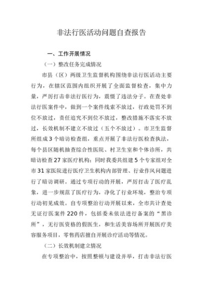 / 【七哥公文】2024年:非法行医问题自查报告+更多免费公文+VX:QiGeGongWen2024
