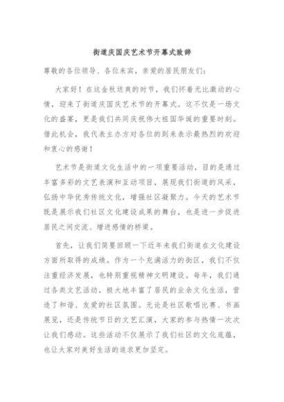 / 【七哥公文】2024年:街道庆国庆艺术节开幕式致辞+更多免费公文+VX:QiGeGongWen2024