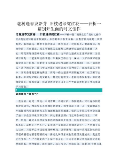 【七哥公文】2024年:老树逢春发新芽旧枝遇绿绽红花——评析一篇别开生面的时文佳作+更多免费公文+VX:QiGeGongWen2024