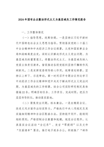 【七哥公文】2024年:2024年国有企业整治形式主义为基层减负工作情况报告+更多免费公文+VX:QiGeGongWen2024