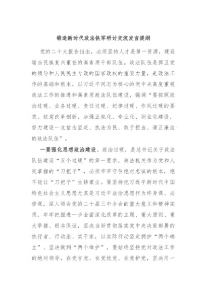 / 【七哥公文】2024年:锻造新时代政法铁军研讨交流发言提纲+更多免费公文+VX:QiGeGongWen2024