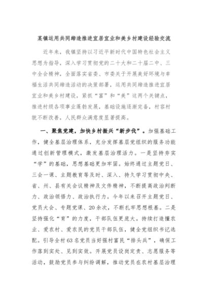 / 【七哥公文】2024年:某镇运用共同缔造推进宜居宜业和美乡村建设经验交流+更多免费公文+VX:QiGeGongWen2024