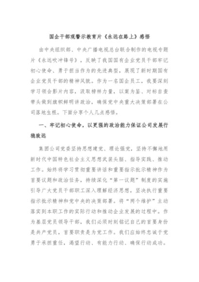 / 【七哥公文】2024年:国企干部观警示教育片《永远在路上》感悟+更多免费公文+VX:QiGeGongWen2024