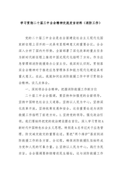 【七哥公文】2024年:学习贯彻二十届三中全会精神交流发言材料(消防工作)+更多免费公文+VX:QiGeGongWen2024