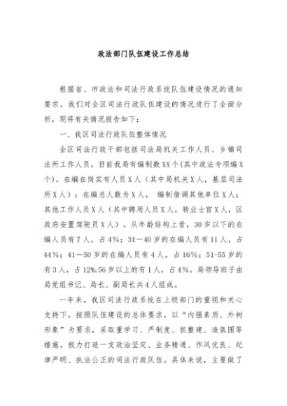 【七哥公文】2024年:政法部门队伍建设工作总结+更多免费公文+VX:QiGeGongWen2024