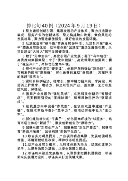/ 【七哥公文】2024年:排比句40例(2024年9月19日)+更多免费公文+VX:QiGeGongWen2024