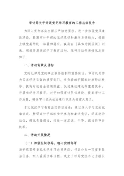 / 【七哥公文】2024年:审计局关于开展党纪学习教育的工作总结报告+更多免费公文+VX:QiGeGongWen2024