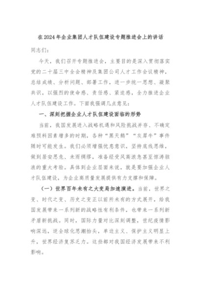 【七哥公文】2024年:在2024年企业集团人才队伍建设专题推进会上的讲话+更多免费公文+VX:QiGeGongWen2024
