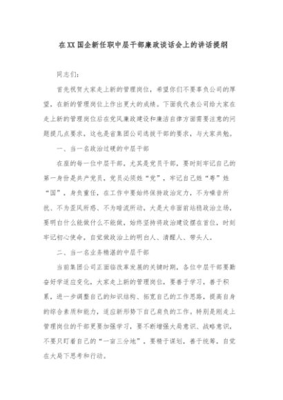 / 【七哥公文】2024年:在XX国企新任职中层干部廉政谈话会上的讲话提纲+更多免费公文+VX:QiGeGongWen2024