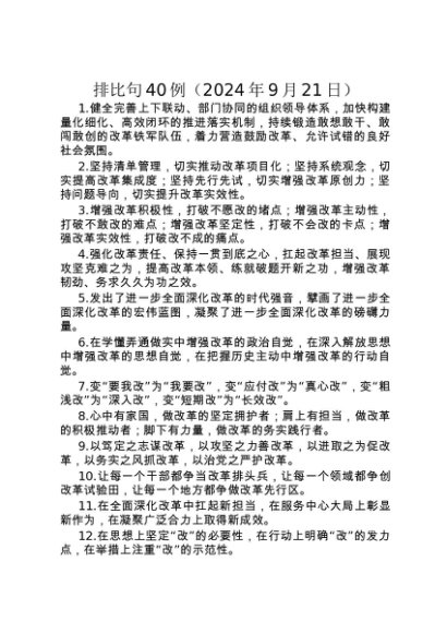 / 【七哥公文】2024年:排比句40例(2024年9月21日)+更多免费公文+VX:QiGeGongWen2024