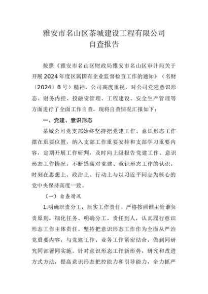 / 【七哥公文】2024年:建筑公司自查报告4.30+更多免费公文+VX:QiGeGongWen2024
