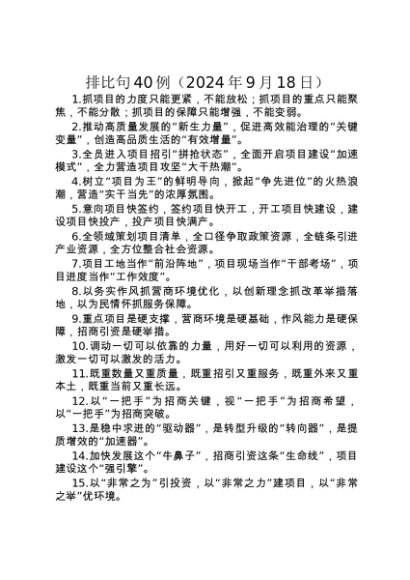 / 【七哥公文】2024年:排比句40例(2024年9月18日)+更多免费公文+VX:QiGeGongWen2024