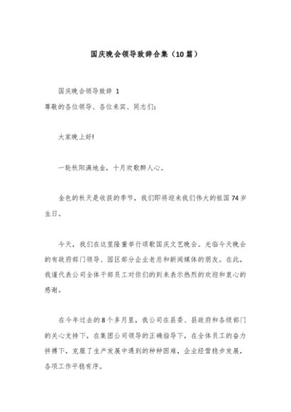 【七哥公文】2024年:10篇国庆晚会领导致辞合集+更多免费公文+VX:QiGeGongWen2024