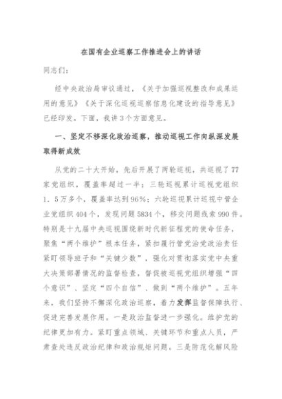 / 【七哥公文】2024年:在国有企业巡察工作推进会上的讲话+更多免费公文+VX:QiGeGongWen2024